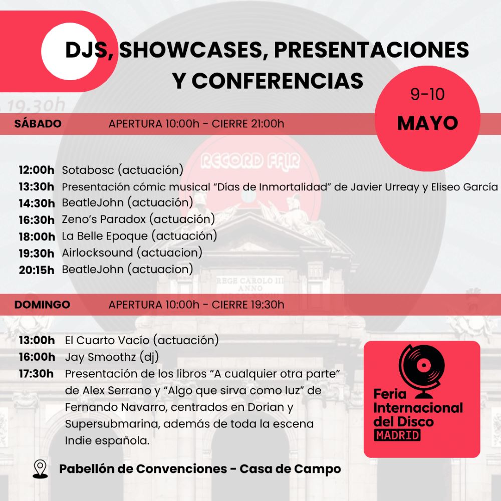 Además, como ya es tradición, la feria irá acompañada de actuaciones en directo, sesiones de DJ y charlas con protagonistas del mundo musical, convirtiendo el evento en una experiencia cultural completa.